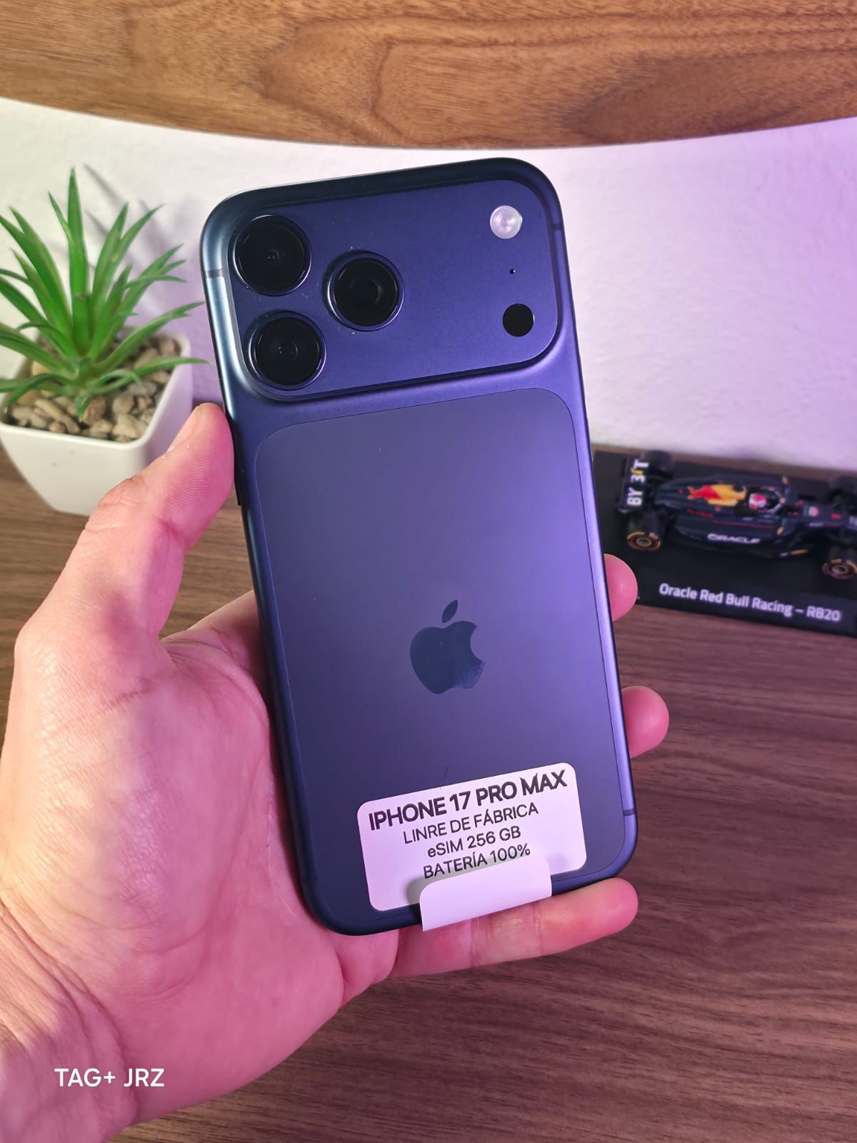 iPhone 17 Pro Max con 256GB de almacenamiento, batería al 100%, libre de fábrica y en estado Grado A. Compatible con eSIM. ¡Como nuevo!